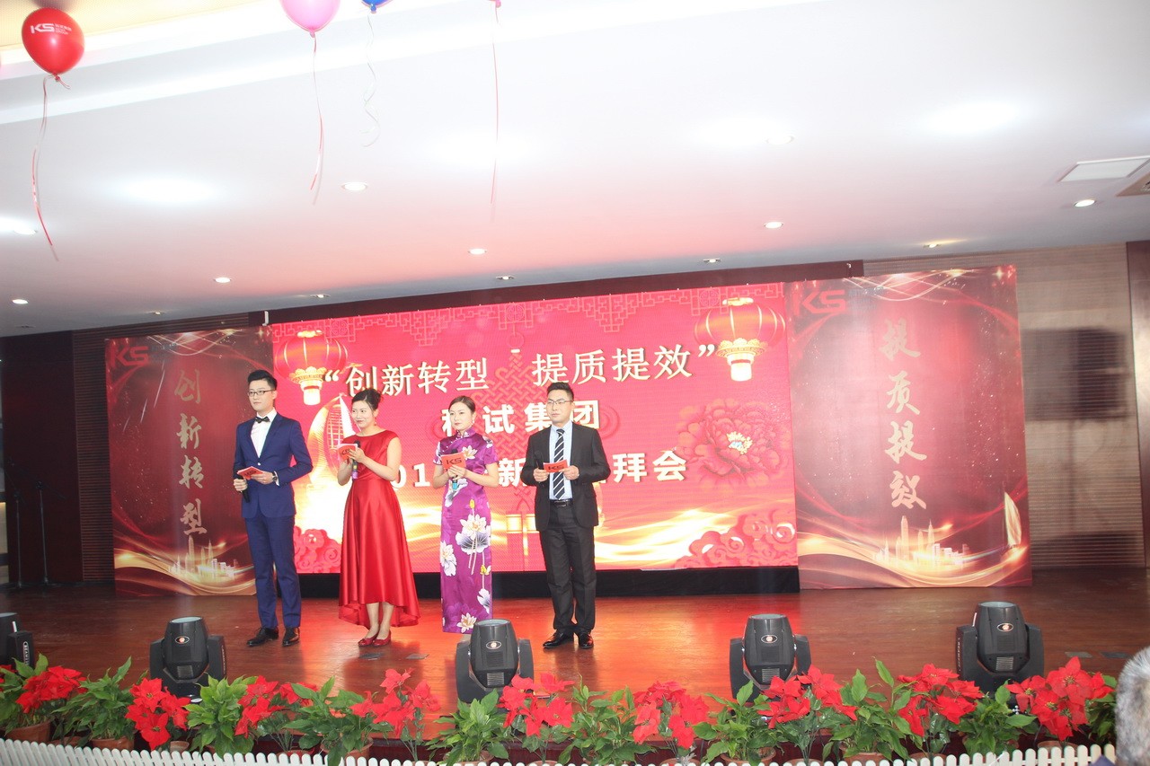 2019年1月28日,科試集團(tuán)2018年度總結(jié)表彰會(huì)暨2019年新春團(tuán)拜會(huì)在集團(tuán)食堂大廳舉行。全體員工歡聚一堂,共謀發(fā)展,喜迎新春。會(huì)上,集團(tuán)公司各子公司領(lǐng)導(dǎo)分別作了全年總結(jié)報(bào)告,集團(tuán)公司總裁姜漢軍發(fā)表了熱情洋溢的新春致辭。姜漢軍代表集團(tuán)公司,向公司廣大干部員工和家屬表示衷心感謝,并致以節(jié)日的問候與祝福。集團(tuán)公司副總裁關(guān)金學(xué)主持會(huì)議。會(huì)議表彰了公司標(biāo)兵、優(yōu)秀員工和優(yōu)秀團(tuán)隊(duì),表彰了三年技術(shù)創(chuàng)新成果獎(jiǎng)、2018年度技術(shù)革新成果獎(jiǎng)和2018年度首臺(tái)套技術(shù)創(chuàng)新成果獎(jiǎng)。