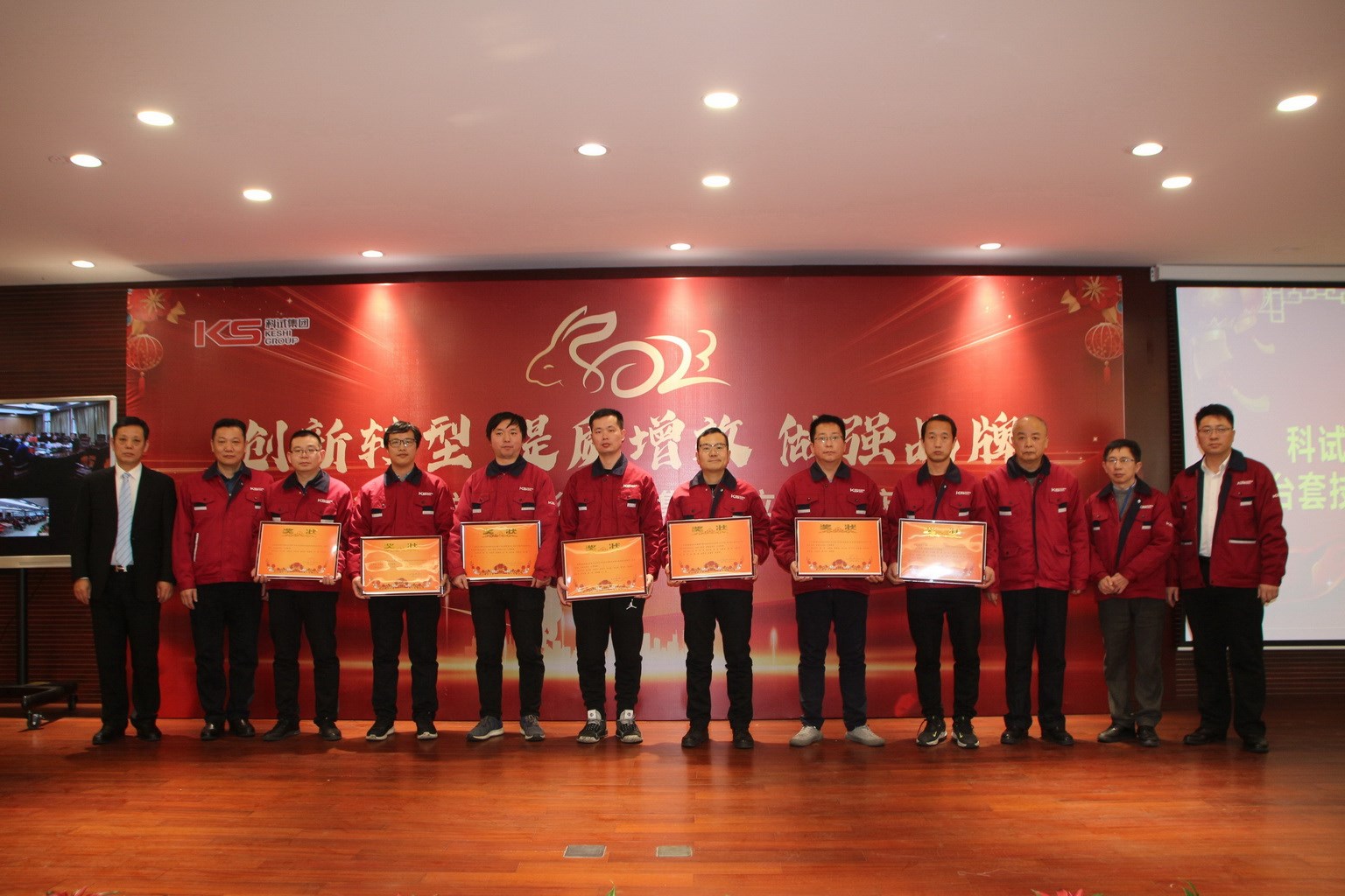 科試集團(tuán)2022年度總結(jié)表彰大會(huì)暨集團(tuán)成立十周年慶典于2023年1月16日下午在集團(tuán)食堂隆重召開。科試中心代表、技服公司在常人員在現(xiàn)場參加了大會(huì),內(nèi)蒙基地及分宜驅(qū)動(dòng)橋公司分會(huì)場通過視頻連線在線參加會(huì)議,大會(huì)由集團(tuán)副總裁王眉林主持。