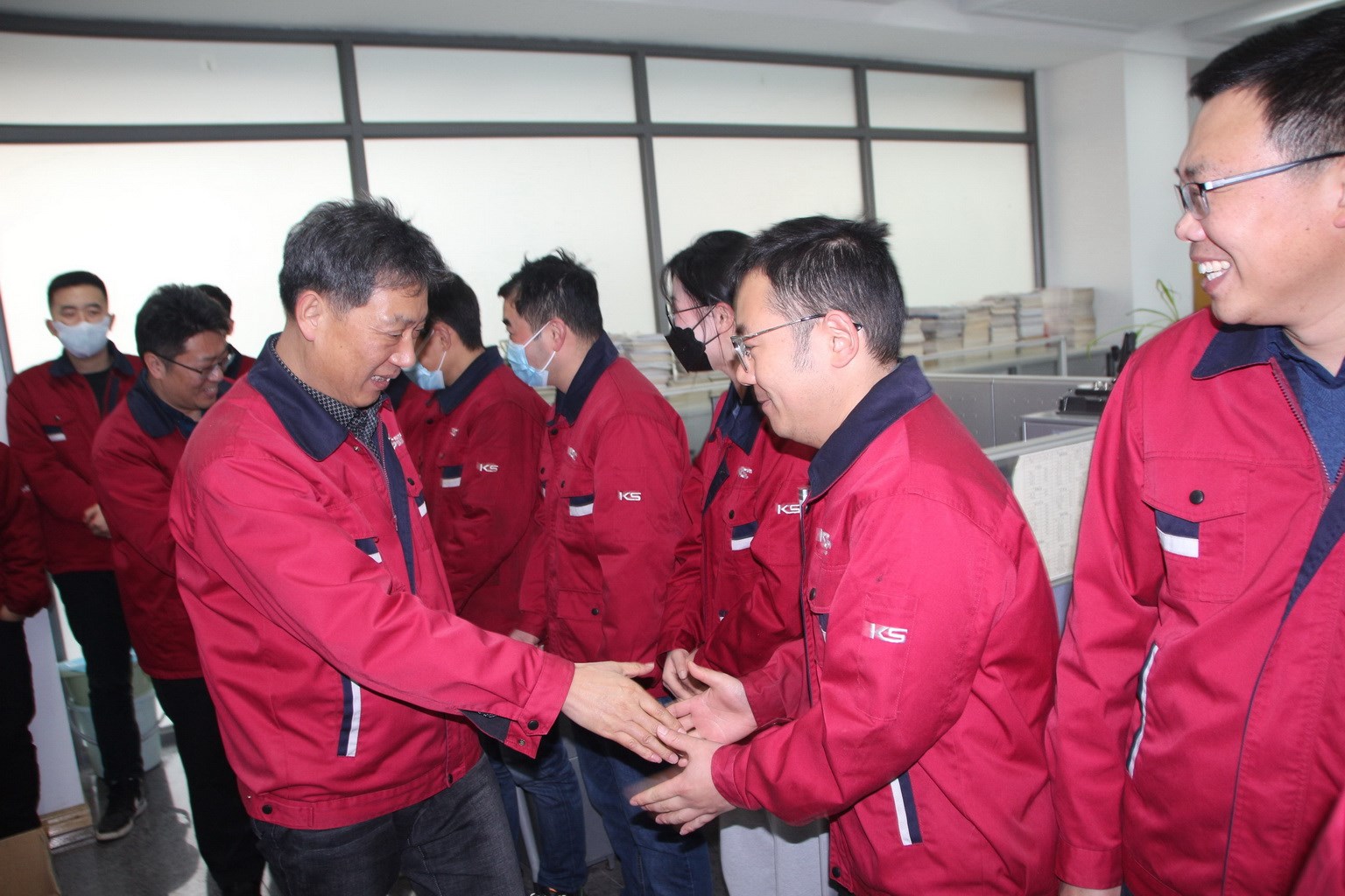 集團副總裁王眉林、關金學、顧祖全帶領領導班子前往公司各個車間、職能部門拜年,給員工們發(fā)放開工紅包并送上真摯的新春祝福。